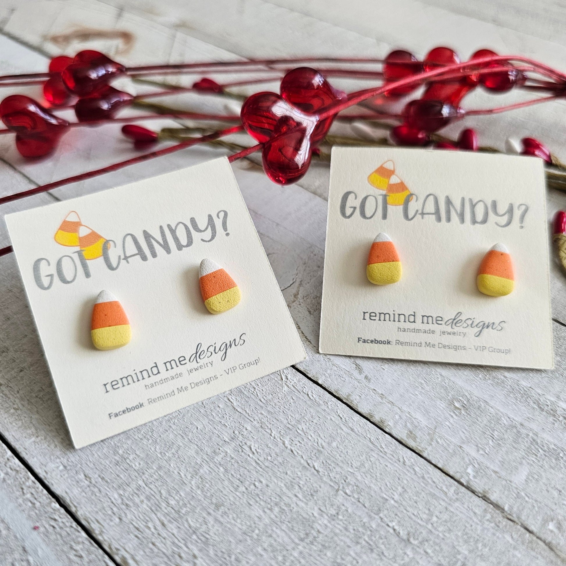 White, Orange, and Yellow Candy Corn Polymer Clay Studs