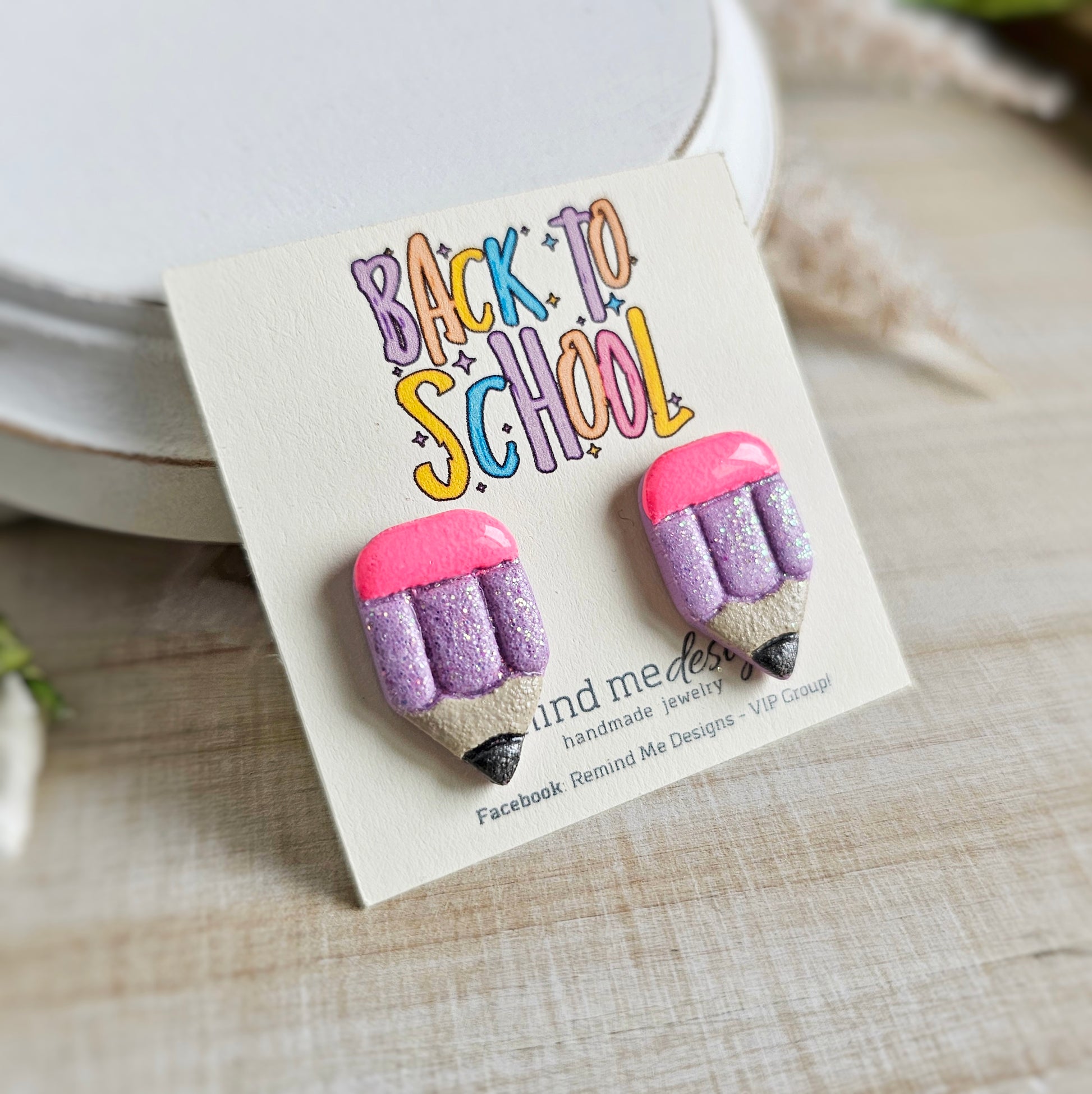 Purple Fairy Glitter Pencil Clay Stud Earrings