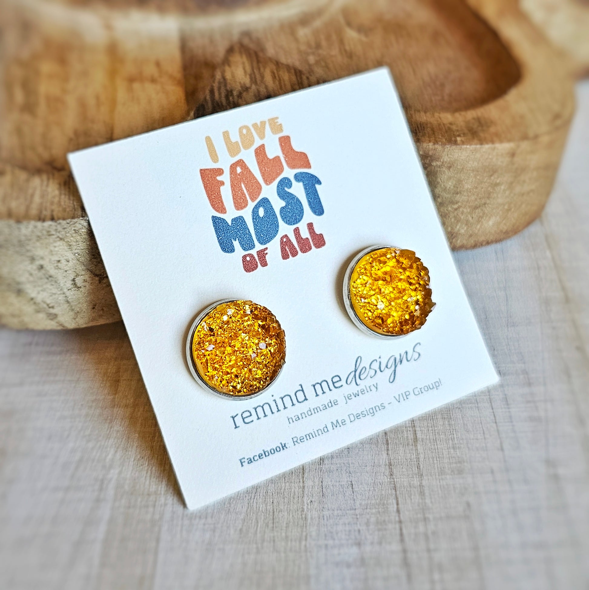 Golden Yellow Druzy Stud Earrings
