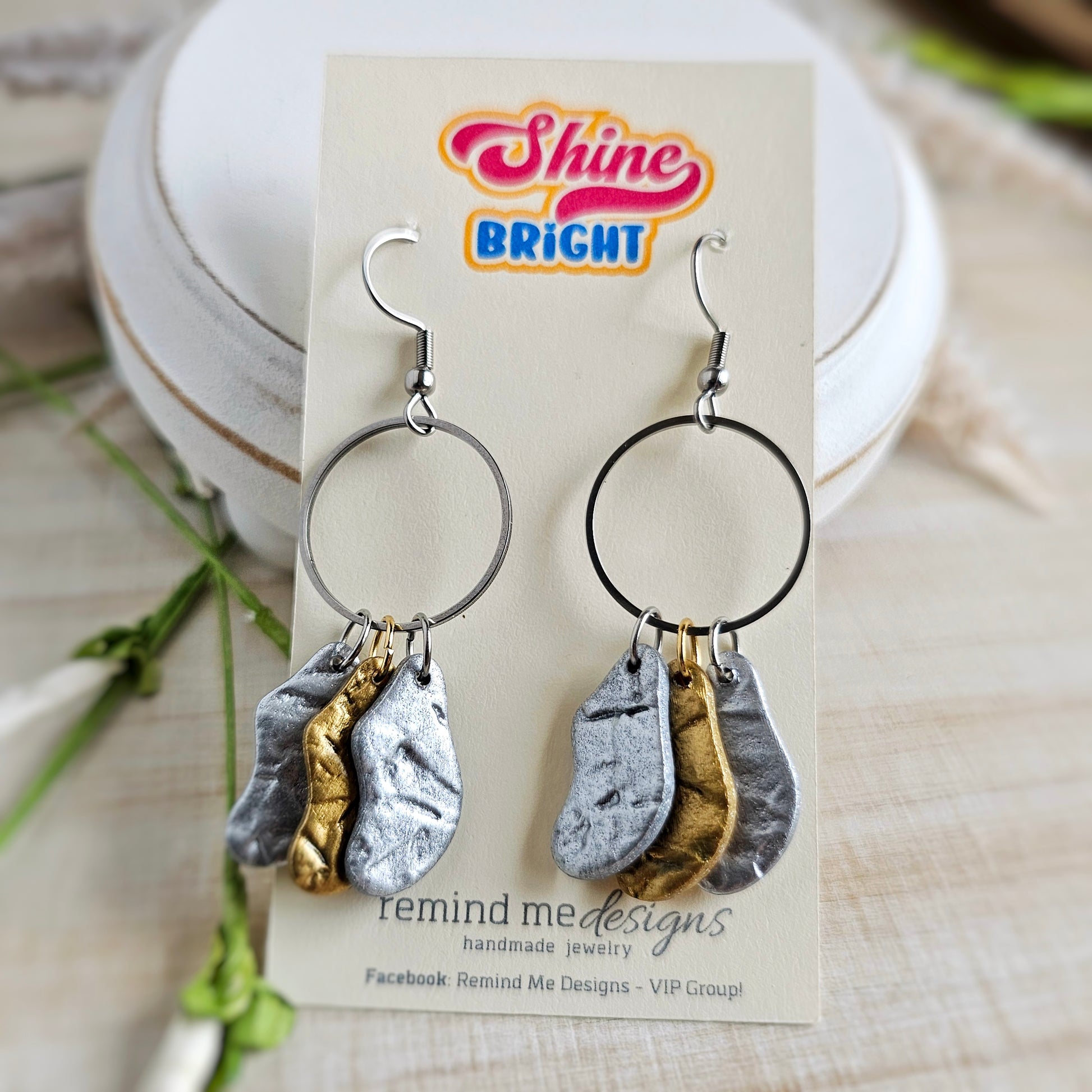 Metallic Silver and Gold Organic 3-piece Polymer Clay Dangles